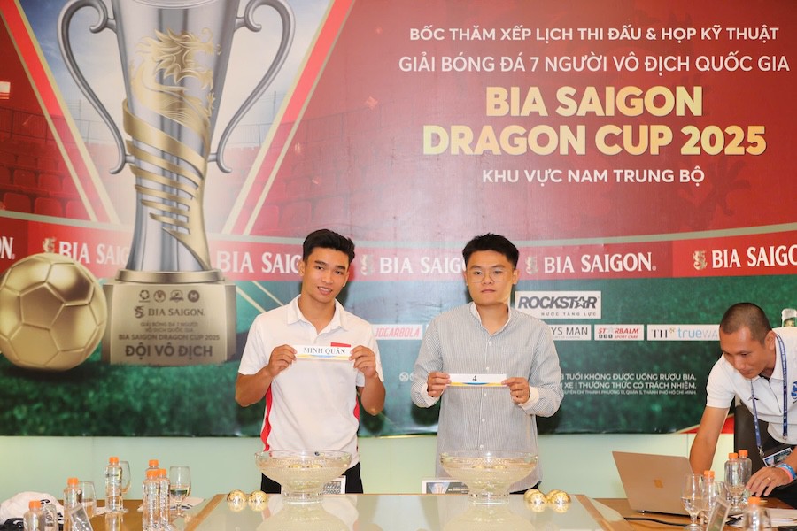 Chiều 11/6, tại khách sạn khách sạn TTC Michelia, Công ty Cổ phần Bóng đá Việt (VietFootball) đã tổ chức bốc thăm xếp lịch thi đấu và họp kỹ thuật Giải bóng đá 7 người vô địch quốc gia Bia Saigon Dragon Cup 2025 – khu vực Nam Trung Bộ.